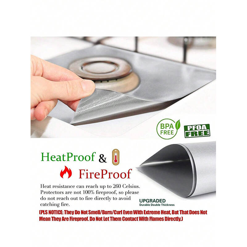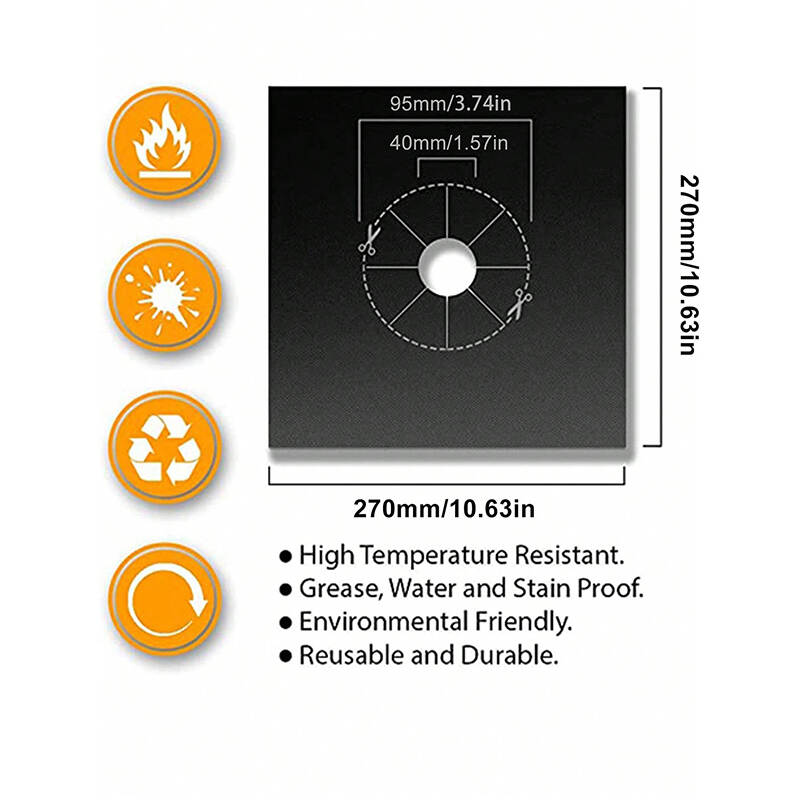 Sized at 10.6" × 10.6" with 0.1 mm thickness, the liners can be trimmed to fit different stove sizes and models. The double-layer structure provides extra strength, ensuring resistance to tearing, curling, or warping, even with frequent use in high-temperature environments.